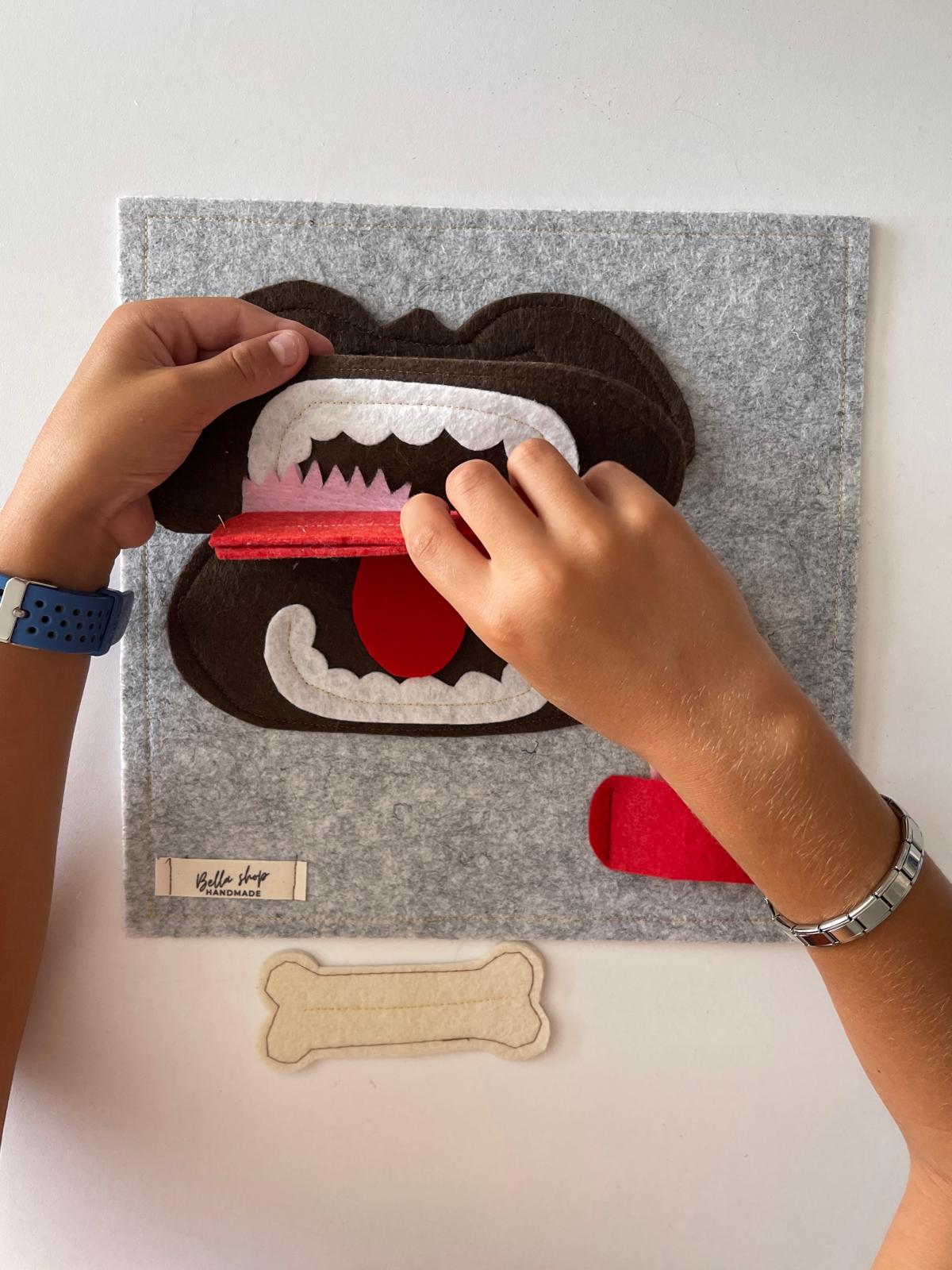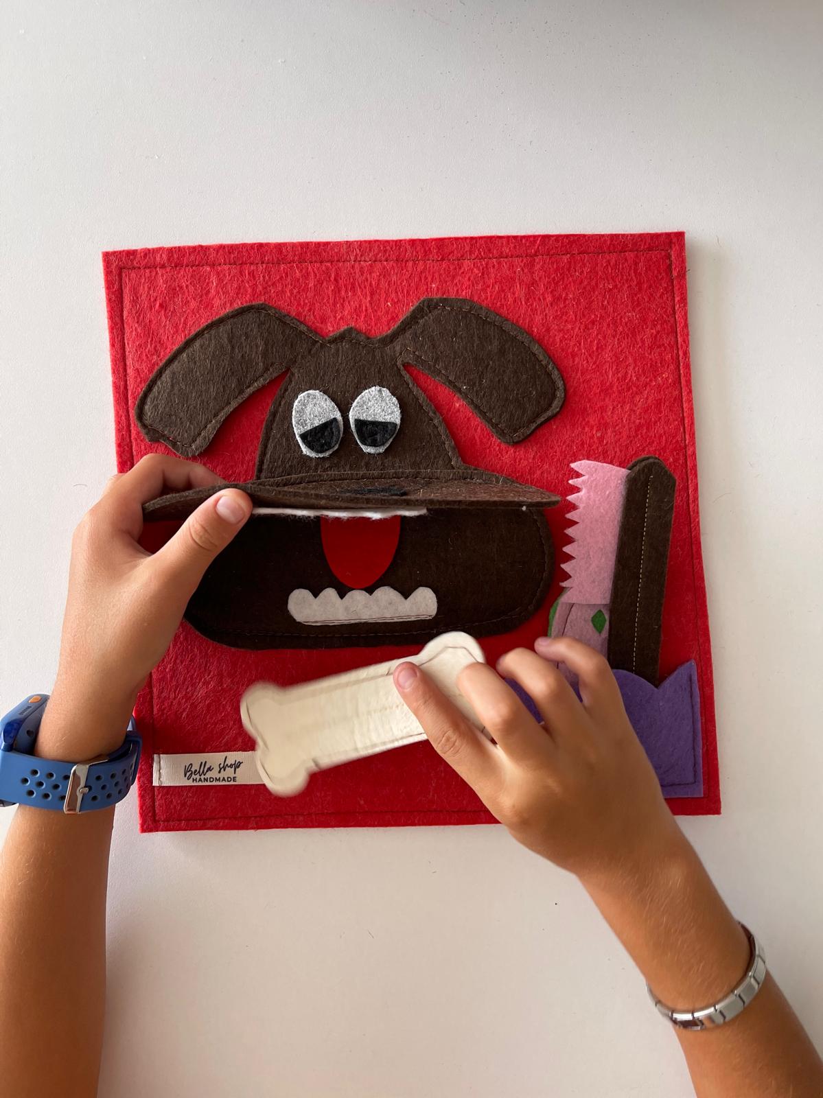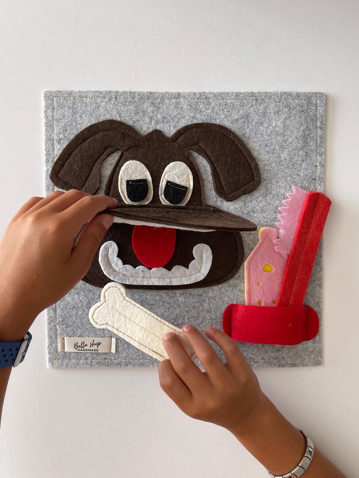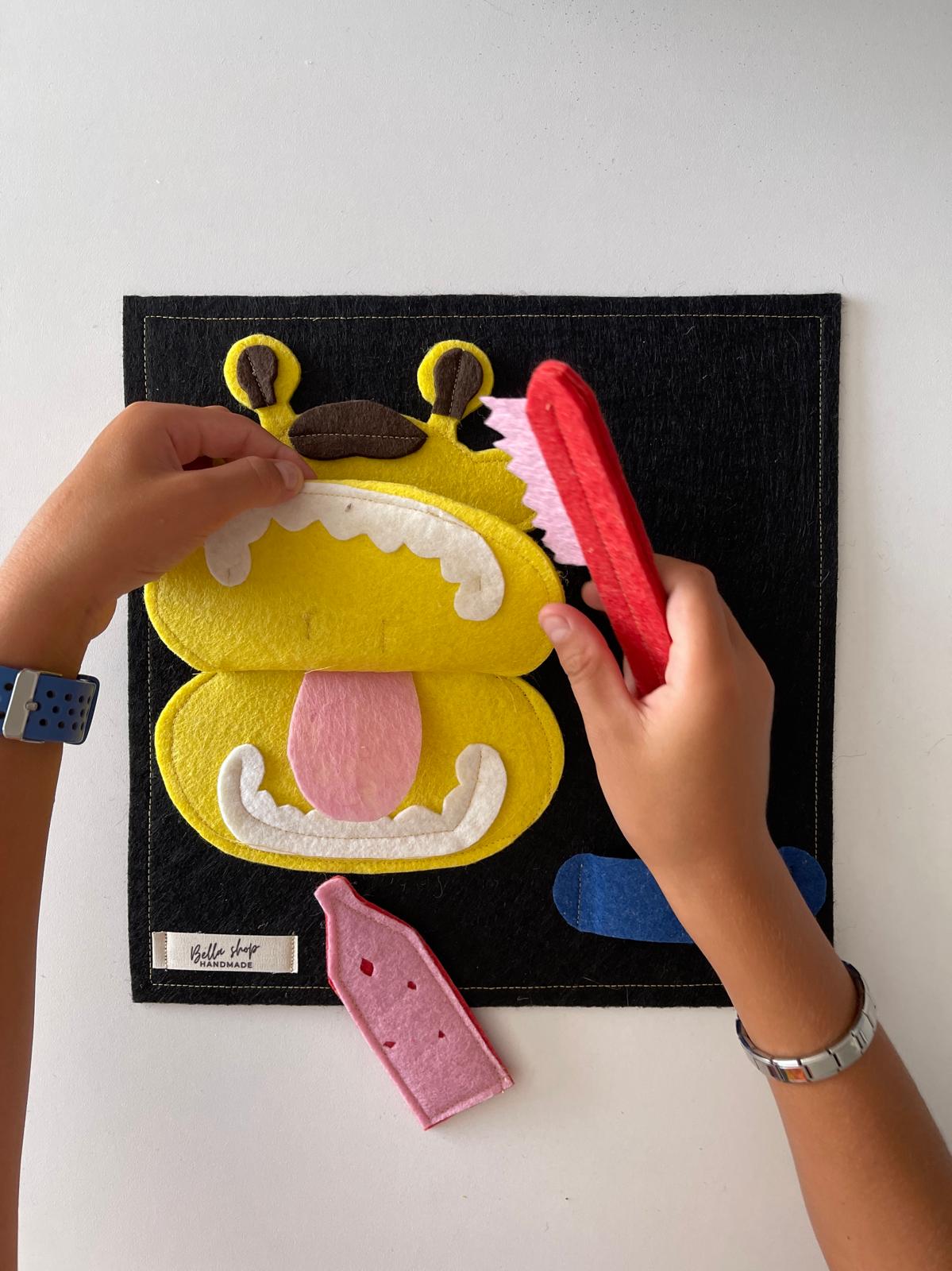 Çocukların öz bakım becerilerini eğlenceli bir şekilde geliştirmesine yardımcı olan bu keçe eğitim oyuncağı, diş fırçalama alışkanlığını kazandırmak için tasarlandı. Renkli ve yumuşak keçe parçalar sayesinde çocuklar, oyunun içinde hem el becerilerini geliştirir hem de günlük hijyen rutinlerini öğrenir.