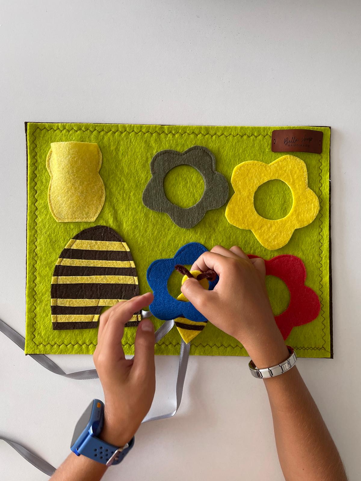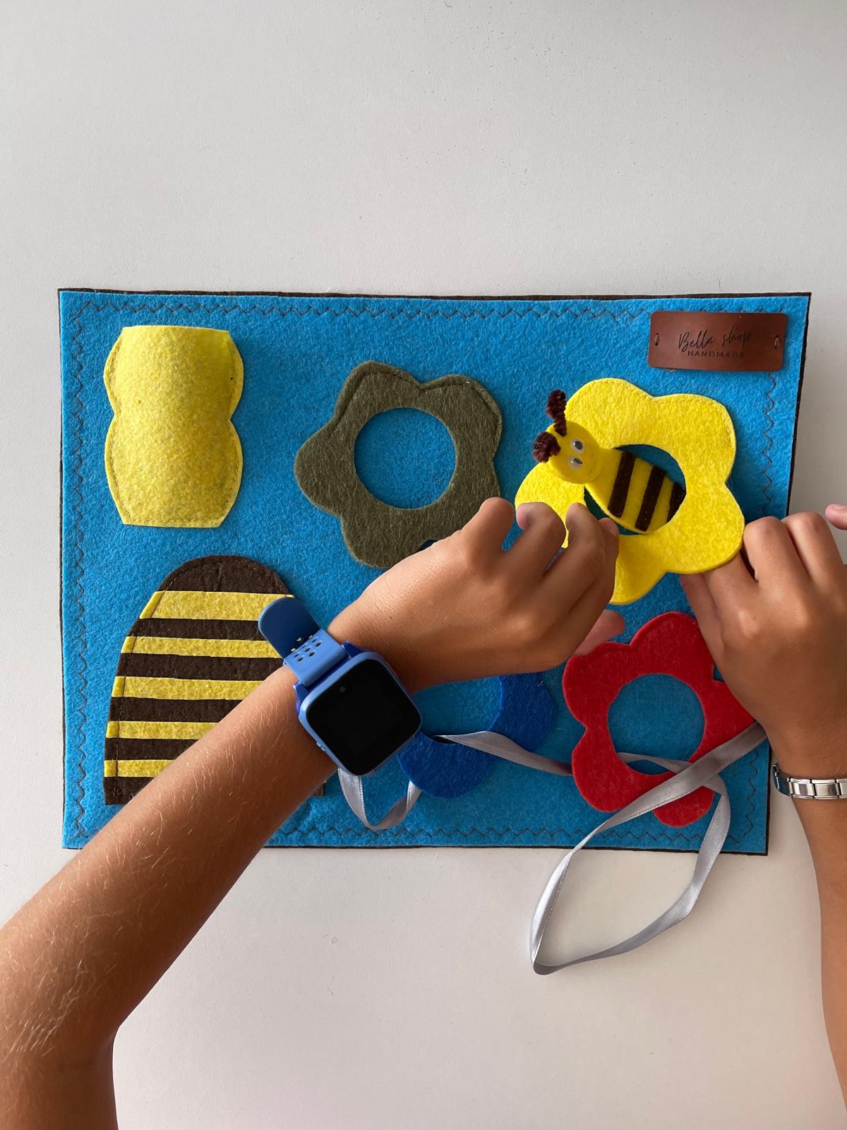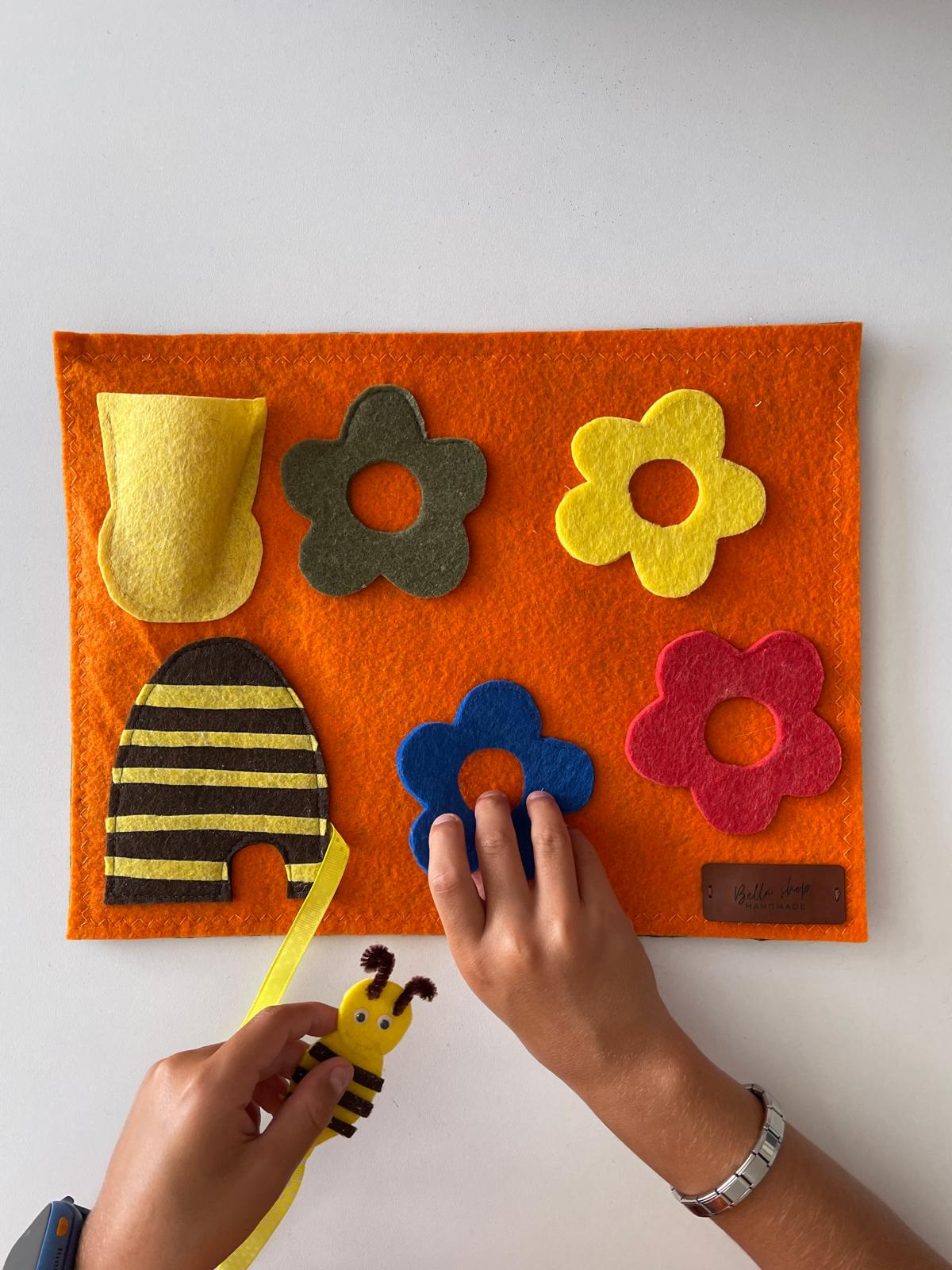 Keçe Arı petek Temalı Motor Geliştirme Oyuncağı, Minik parmaklar için harika bir motor beceri egzersizidir!.