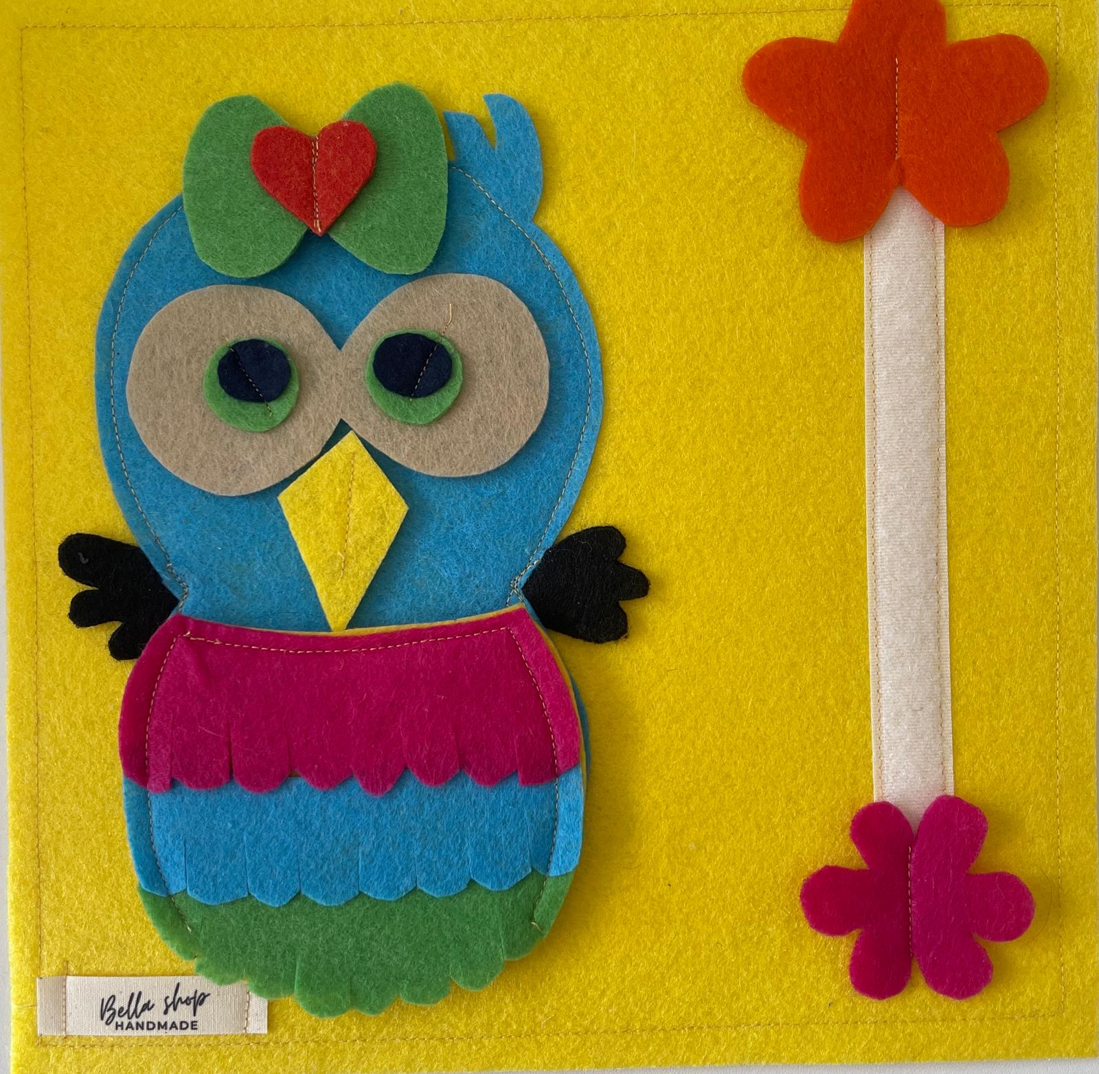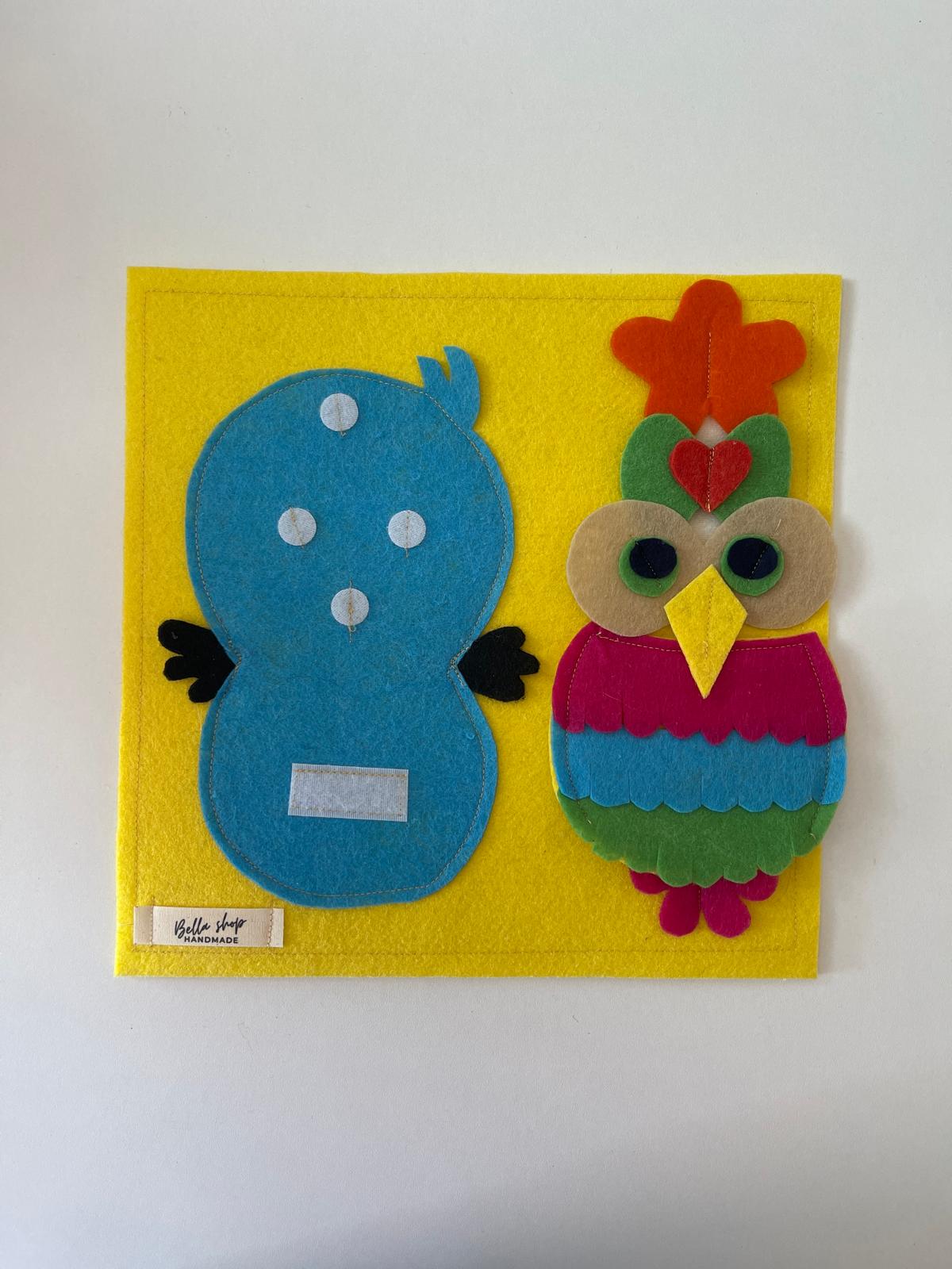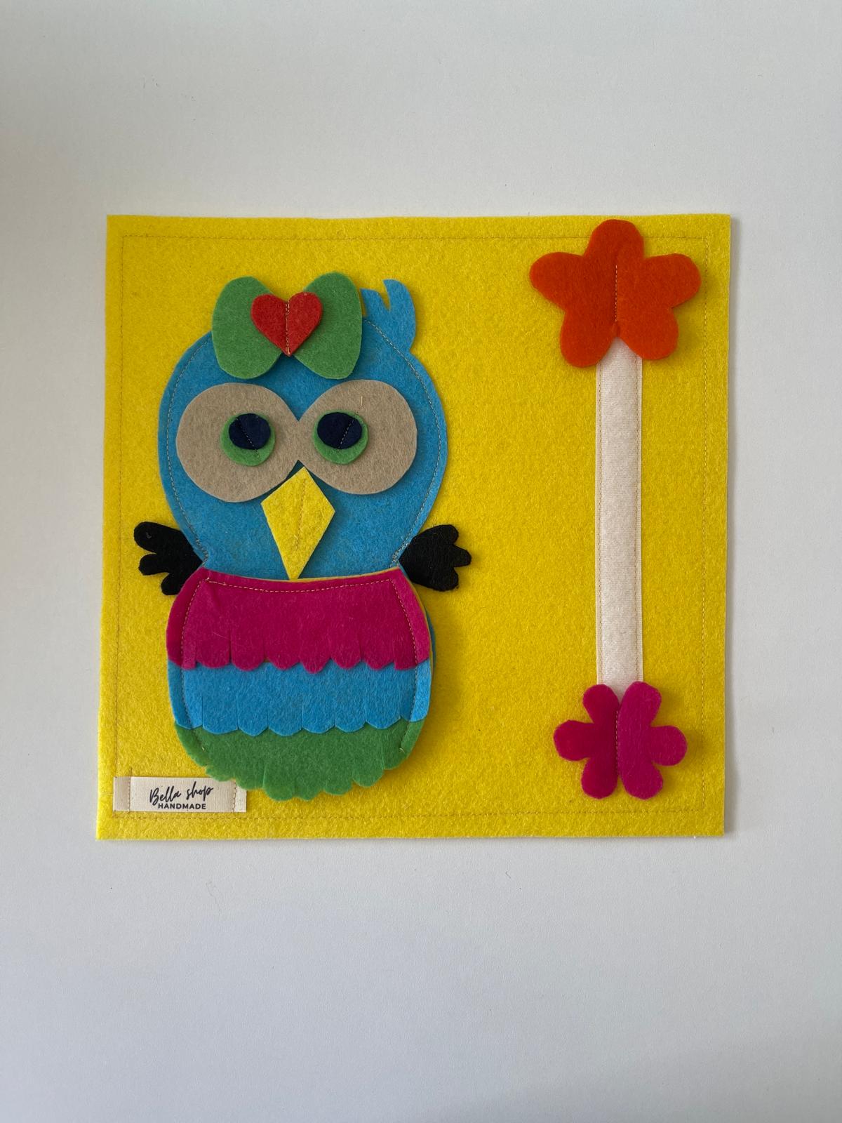 Çocukların renkleri, şekilleri ve hayvanları eğlenerek öğrenmesini sağlayan bu sevimli keçe oyun paneli; dikkat, odaklanma ve el-göz koordinasyonunu geliştirmek üzere özenle tasarlandı.