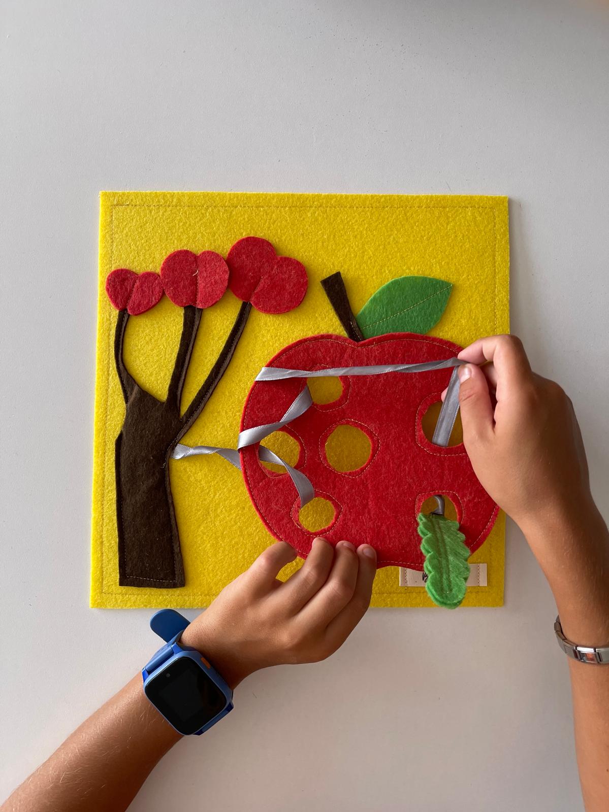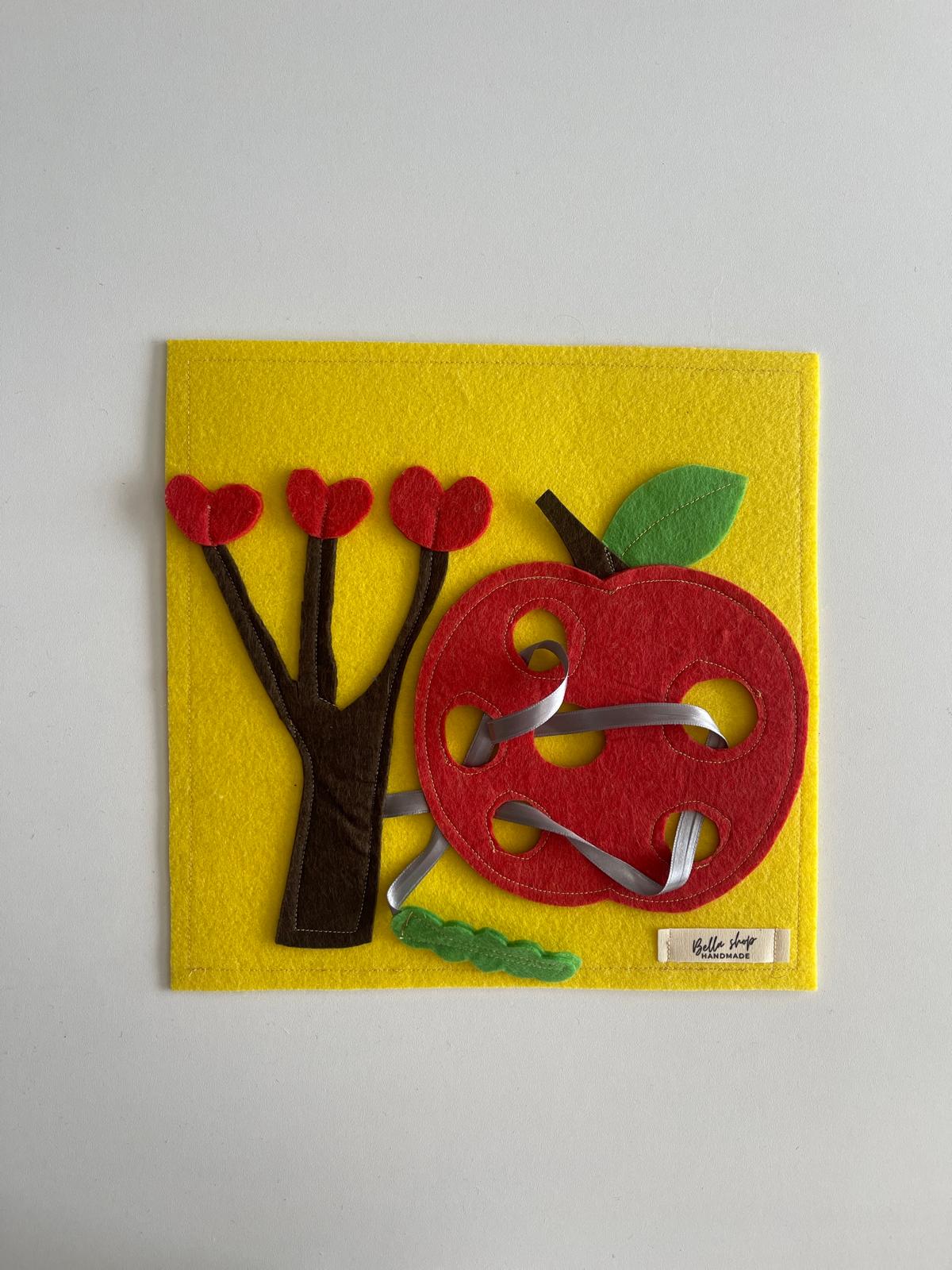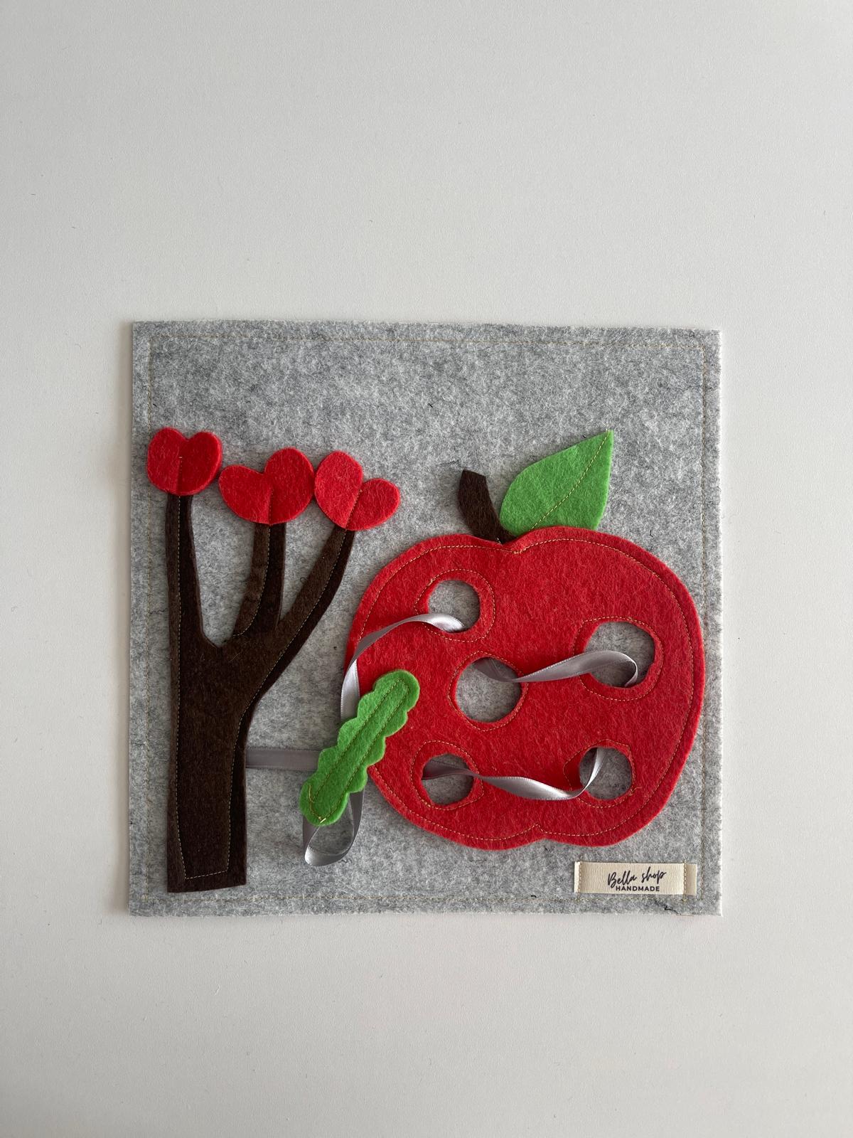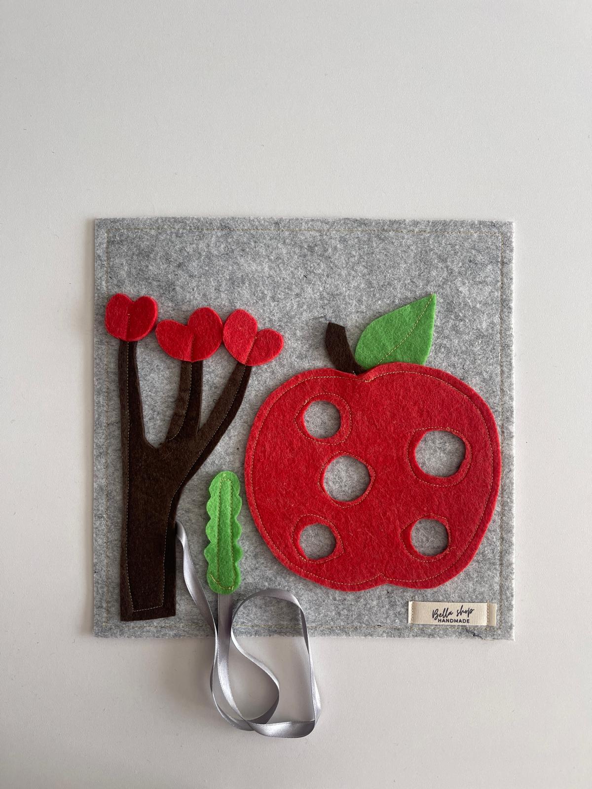 Keçe Elma ve Tırtıl Temalı Motor Geliştirme Oyuncağı, Minik parmaklar için harika bir motor beceri egzersizidir!.