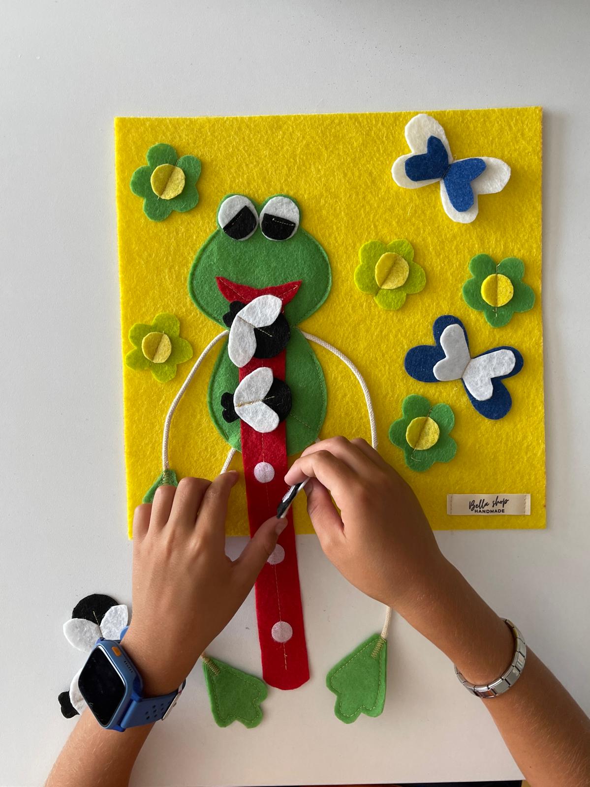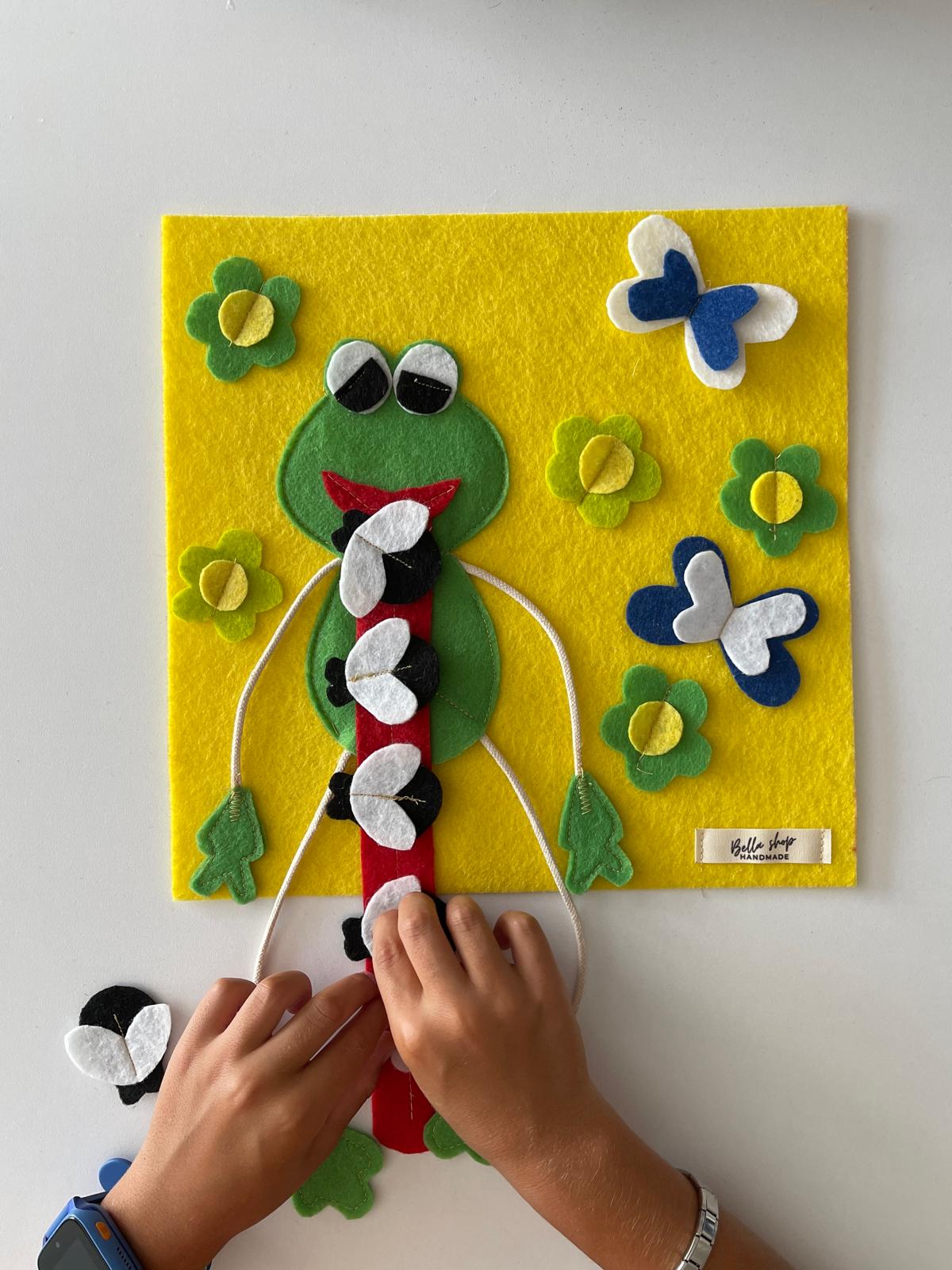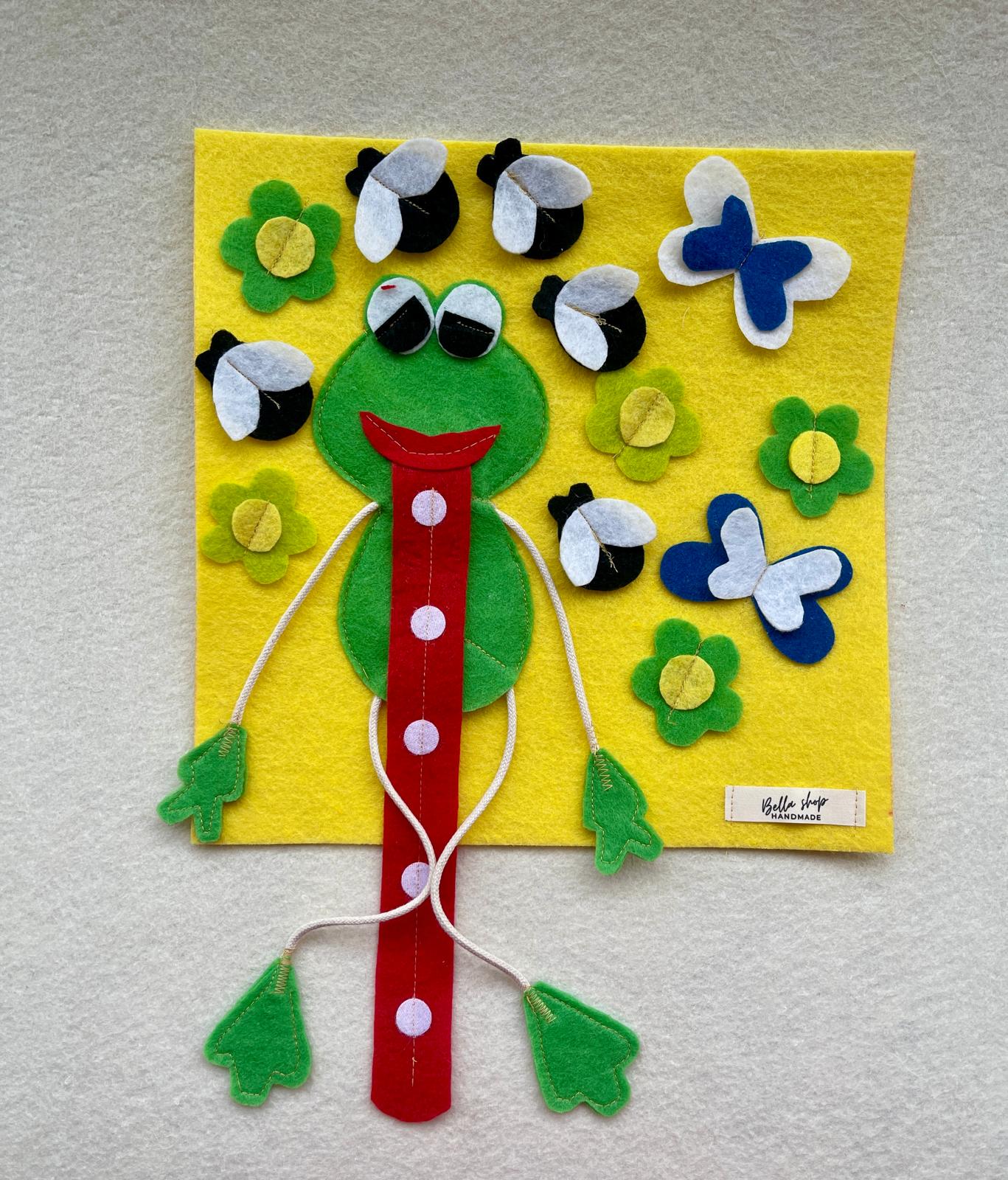 Kurbağa Figürlü Besleme Oyunu – Cırt Cırtlı Sinek Yakalama Keçe Oyuncağı