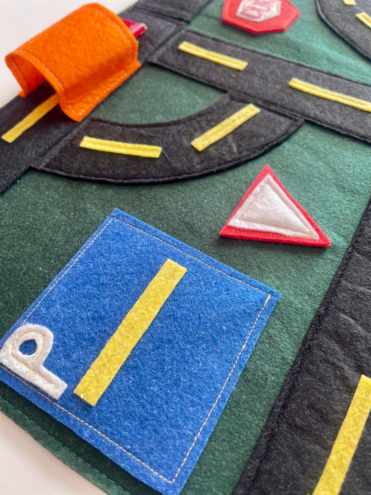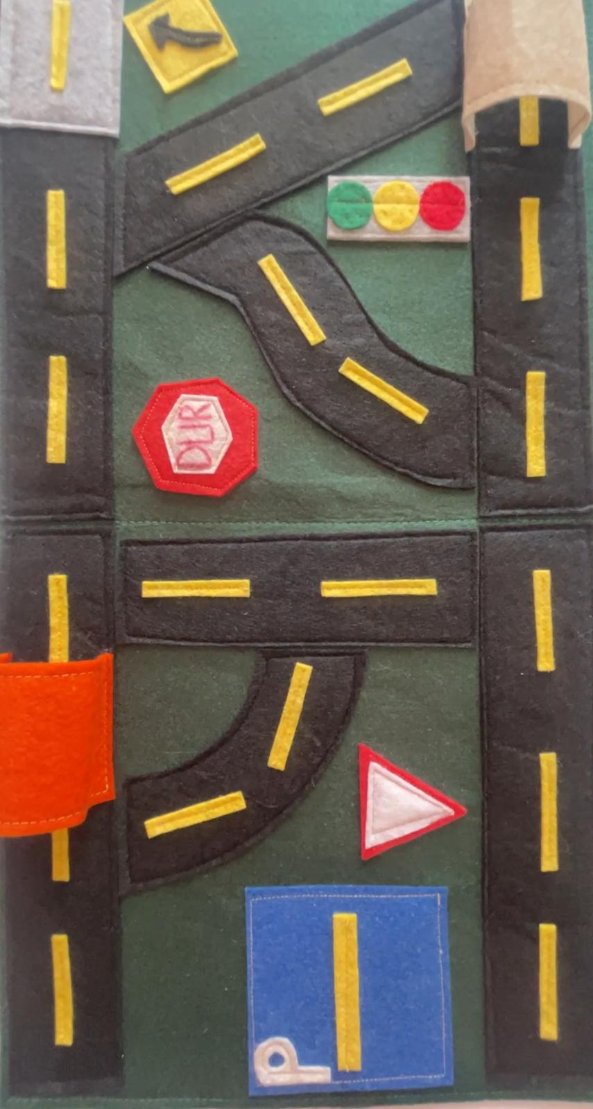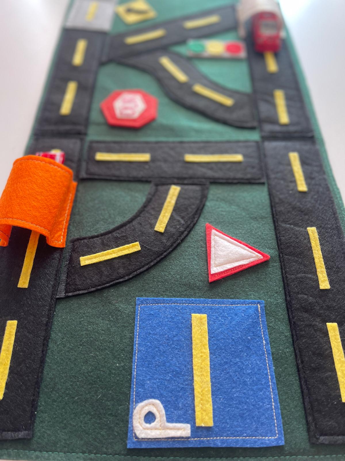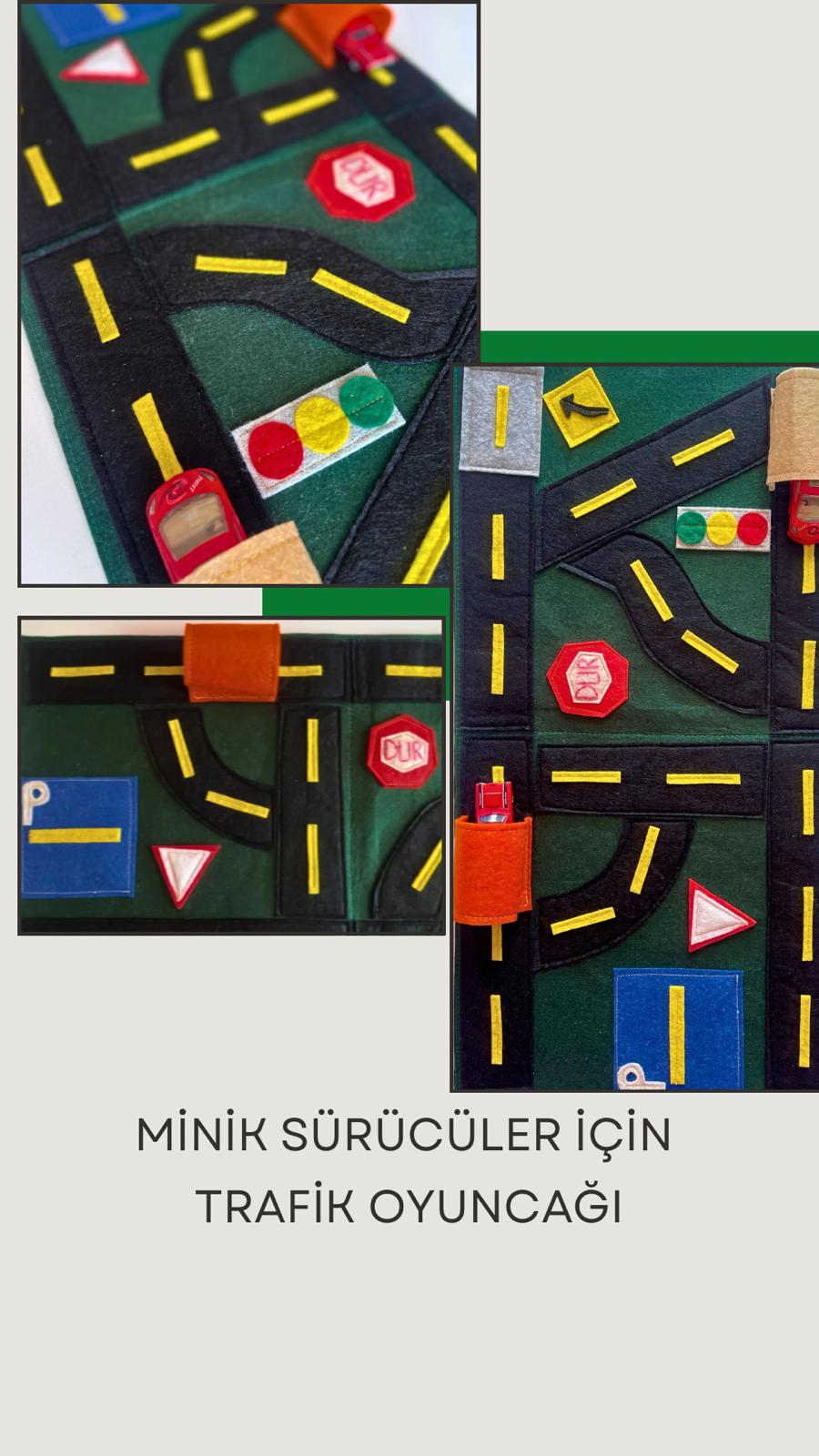 Trafik ışıkları, yol işaretleri, tünel, otopark ve dur tabelası… Hepsi bu eğitici keçe yol setinde bir araya geldi!